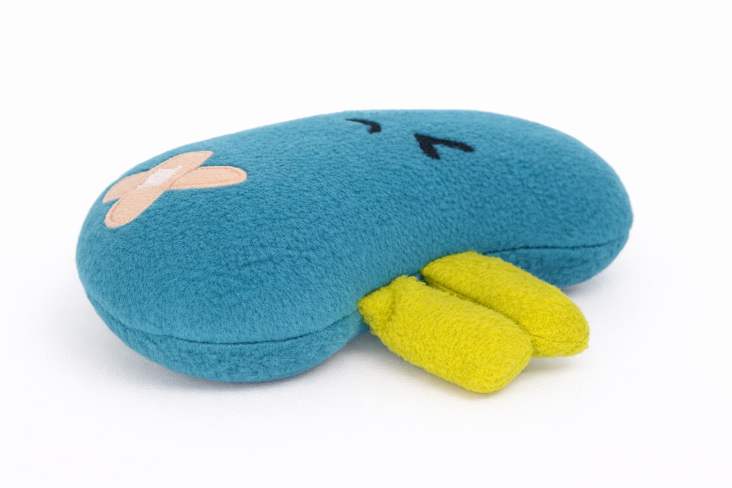 The kidney plushie is made entirely out of soft fleece, and filled with brand new hollow fibre (pillow fibres).